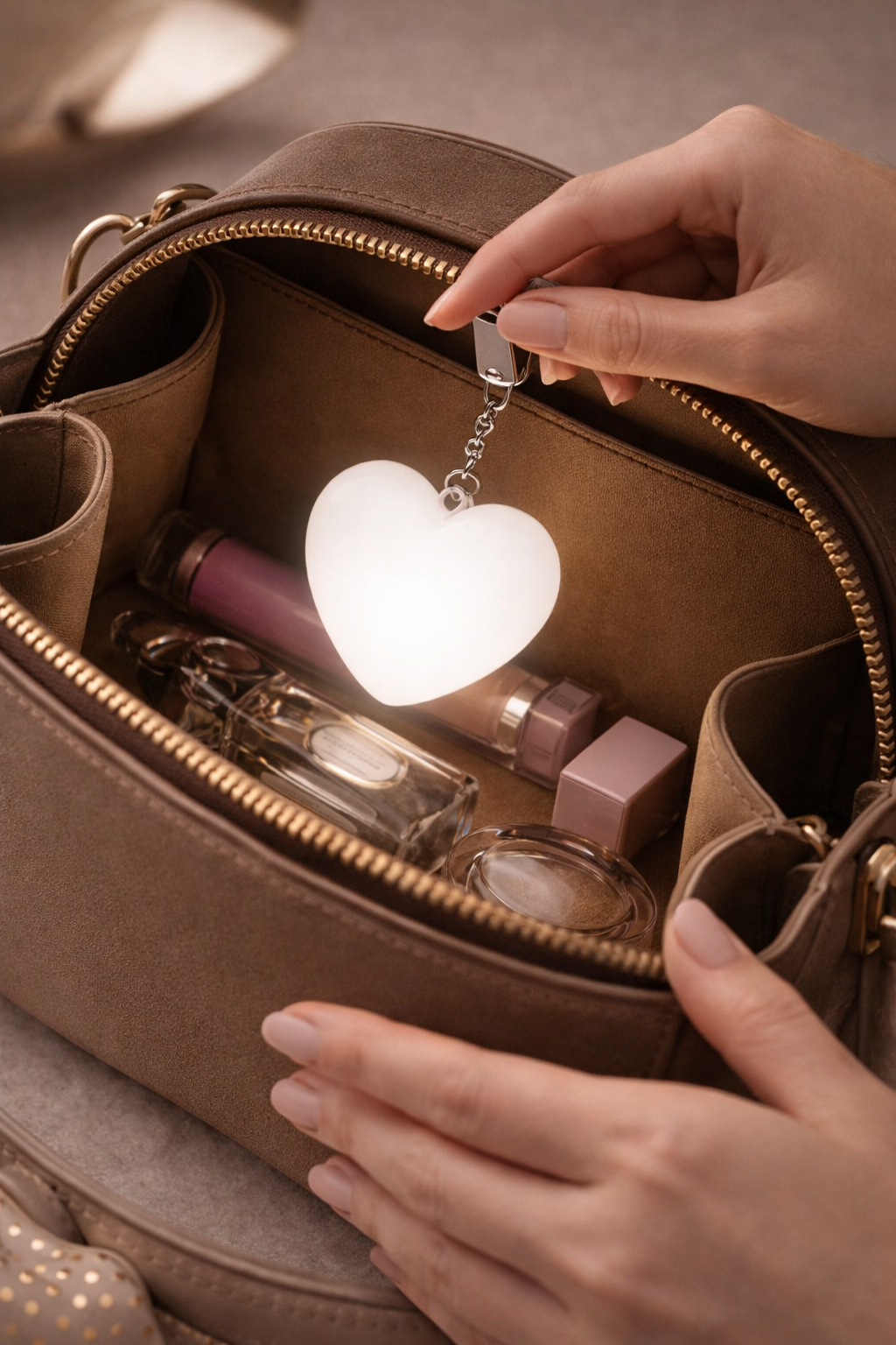 HeartGlow™ is a compact, heart-shaped LED light designed to instantly illuminate the inside of your handbag, backpack, or everyday essentials.